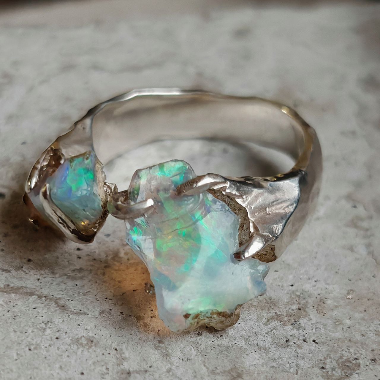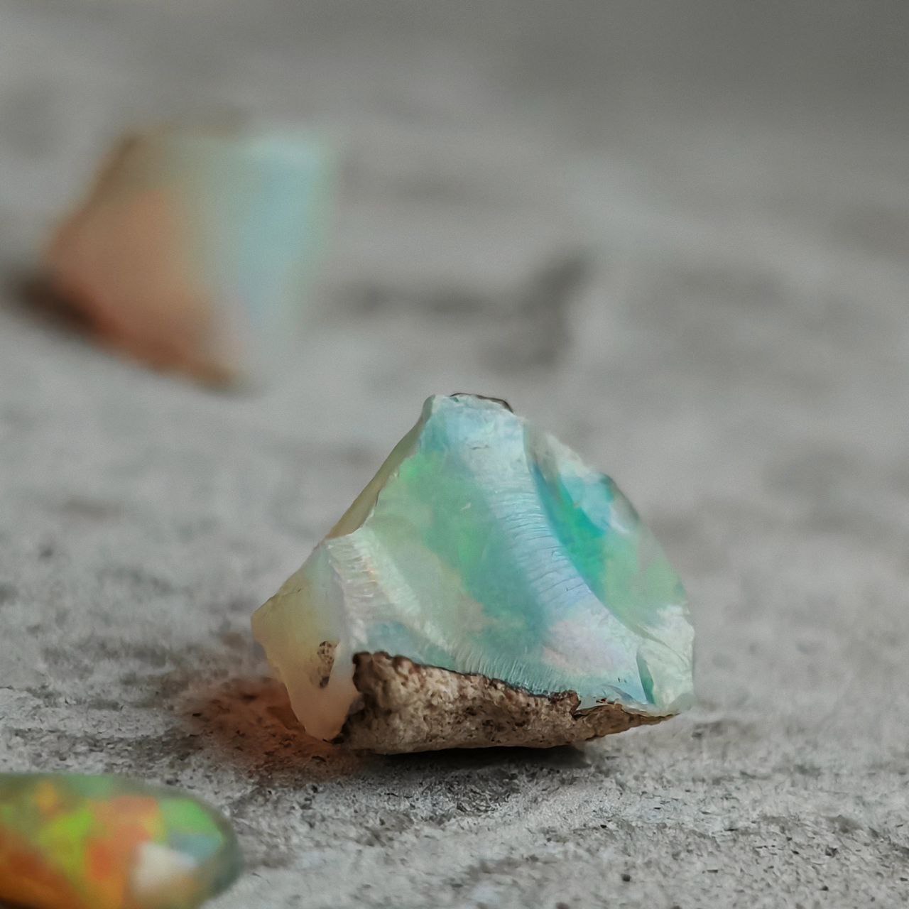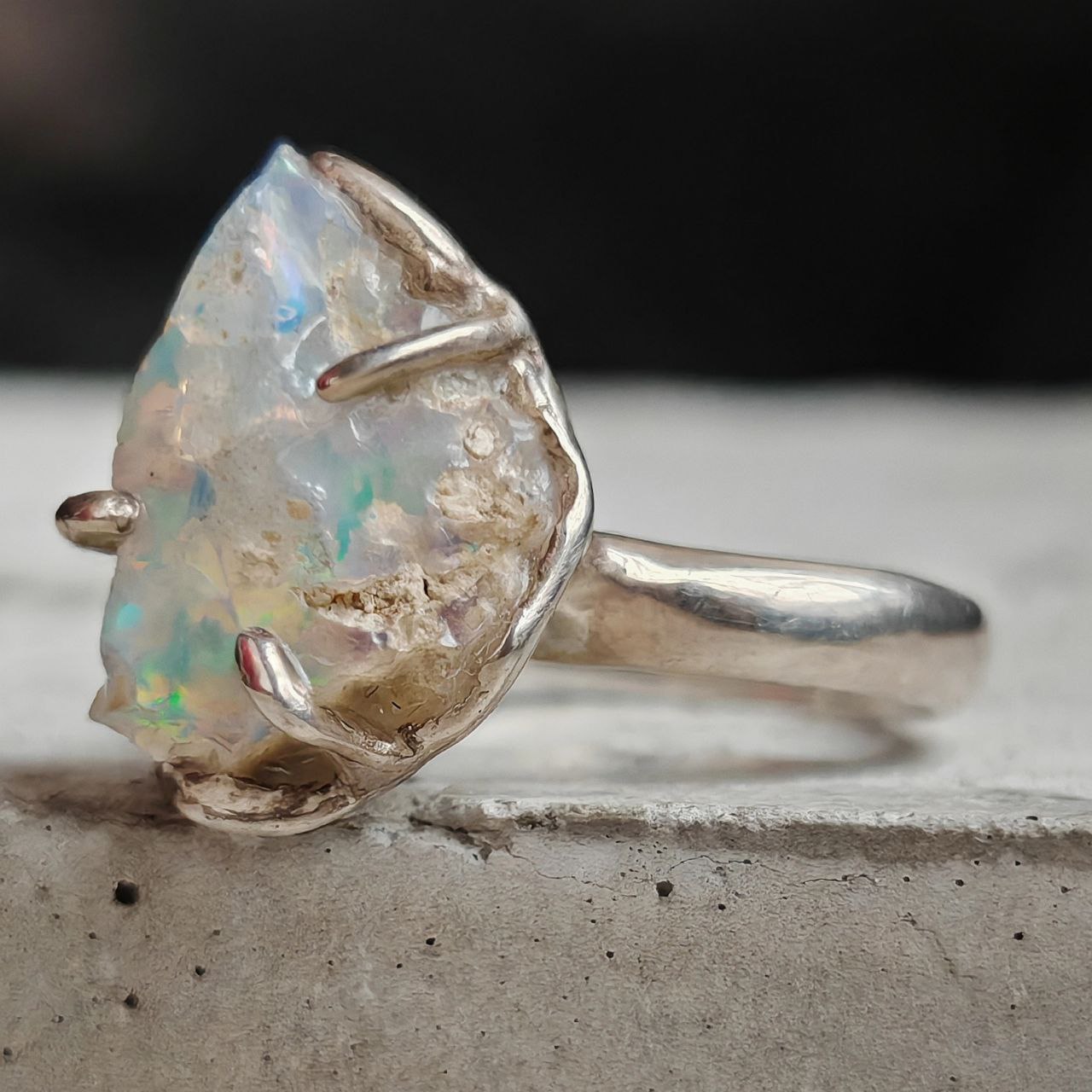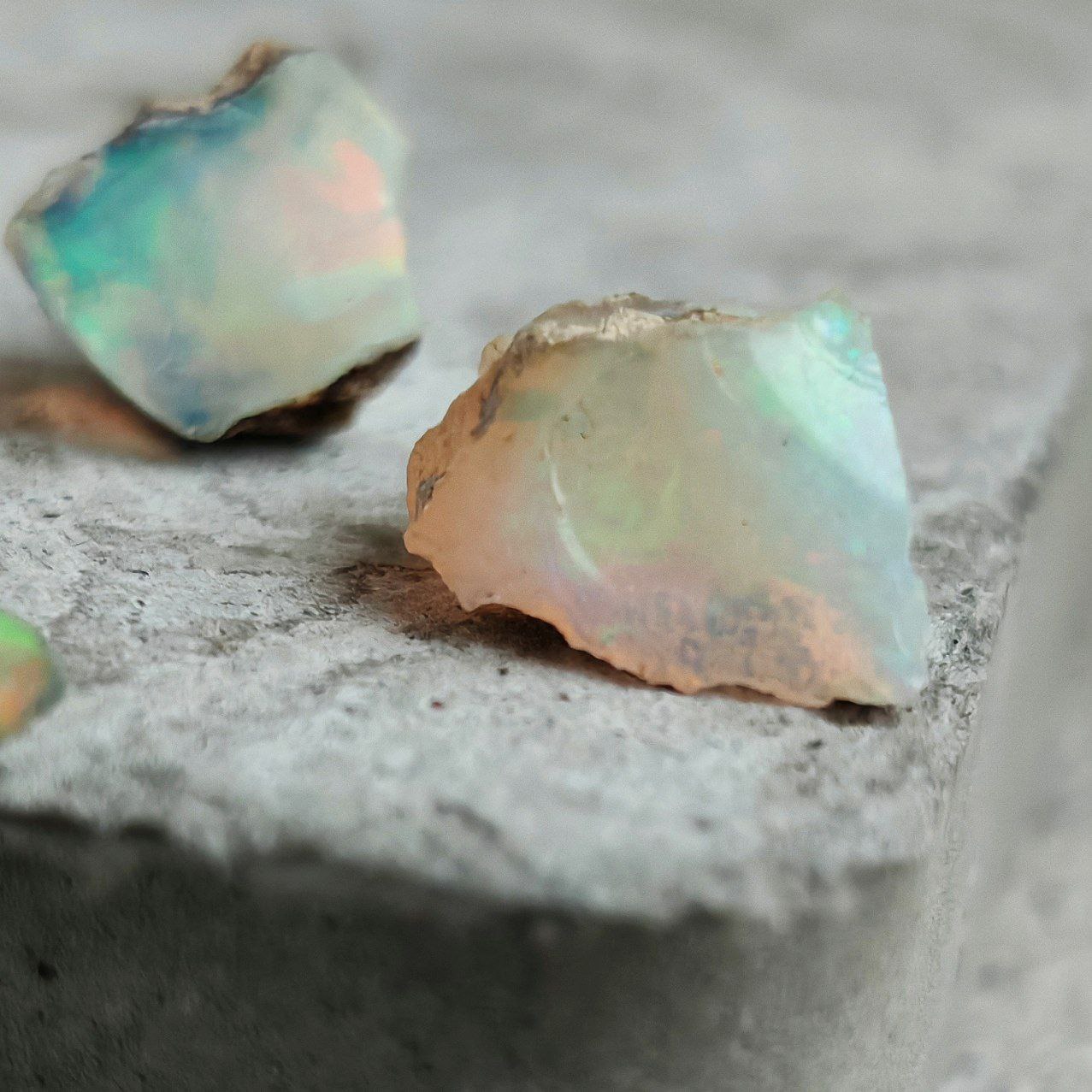 Такой красочный опал — камень редкий. К нам он приезжает из далёкой Эфиопии. И, конечно, он особенный! По своей природе это гидрофан — то есть, буквально, «любящий воду». Он может впитывать её, как губка, и содержать внутри до 20% влаги. Из-за этого он весьма тёплый на ощупь, легче большинства минералов и, действительно, «дышит». Эта же живость делает его отзывчивым: если он «вдыхает» достаточно влаги, его вспышки будут яркими. Если его забыть в воде — может местами помутнеть. А если высыхает — на время поблёкнуть, словно задремав. Как и всё живое, он просит внимания, но зато откликается настоящей магией.